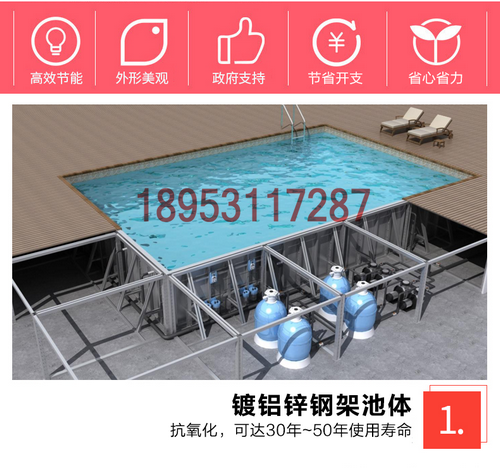 赤坎钢结构游泳池可拆装室内恒温游泳馆户外拼装式游泳池
